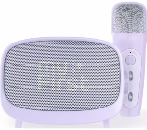 Right out of the box the unit caught her attention with the wireless microphone, Bluetooth pairing and built-in voice effects like echo and reverb — she felt like a star right away. The purple colour is bright and fun, which helps it feel special for her (rather than “just another gadget”).